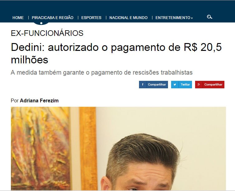 Dedini: autorizado o pagamento de R$ 20,5 milhões é destaque na Gazeta de Piracicaba