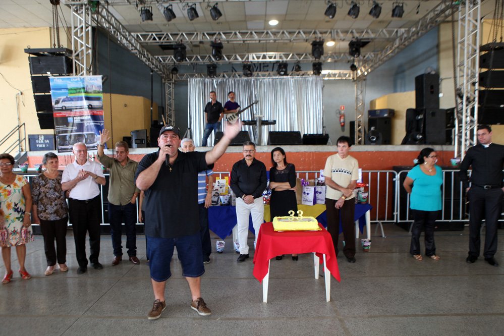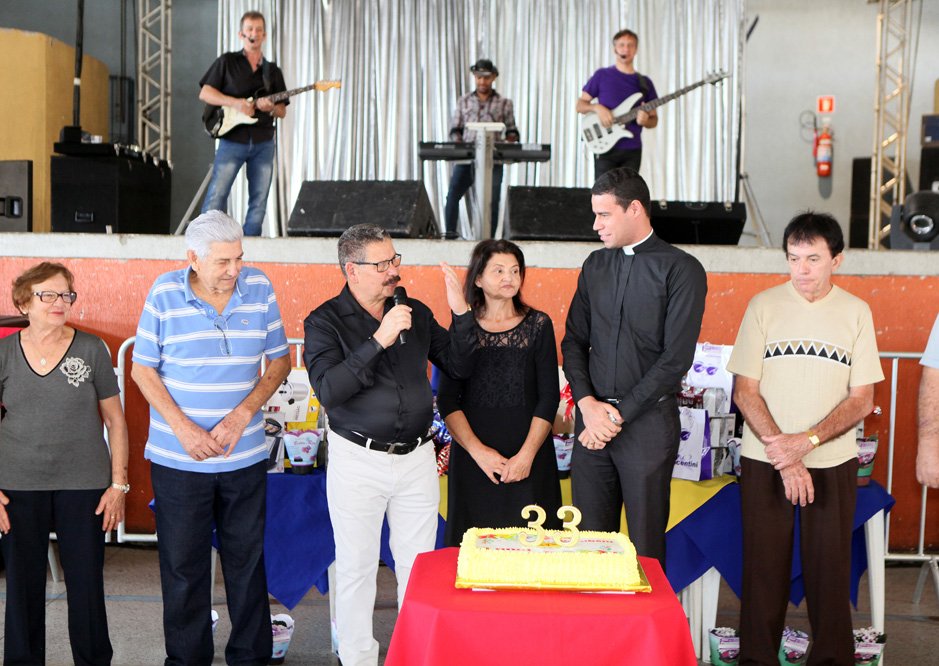 Padre Willian Bento, deixou uma mensagem aos presentes e logo após o tradicional parabéns foi cantado por todos. Diversos prêmios também foram sorteados. Os associados e convidados se divertiram ao som da banda Tok Especial.