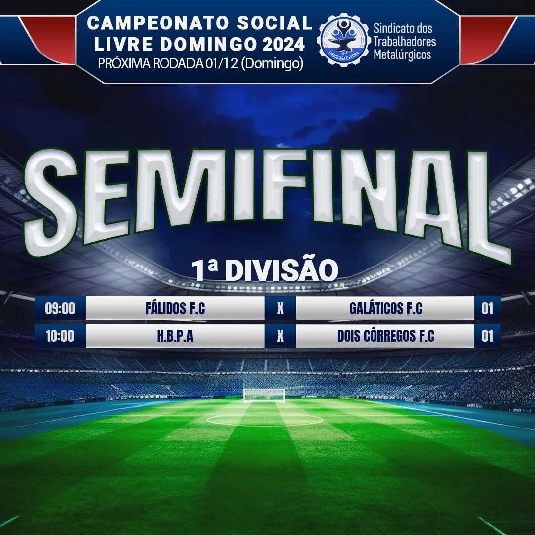 O futebol segue no Clube Recreativo dos Metalúrgicos. Os times do Campeonato Social Livre tem compromisso marcado para disputar as semi finais, no dia 01 de dezembro, domingo.