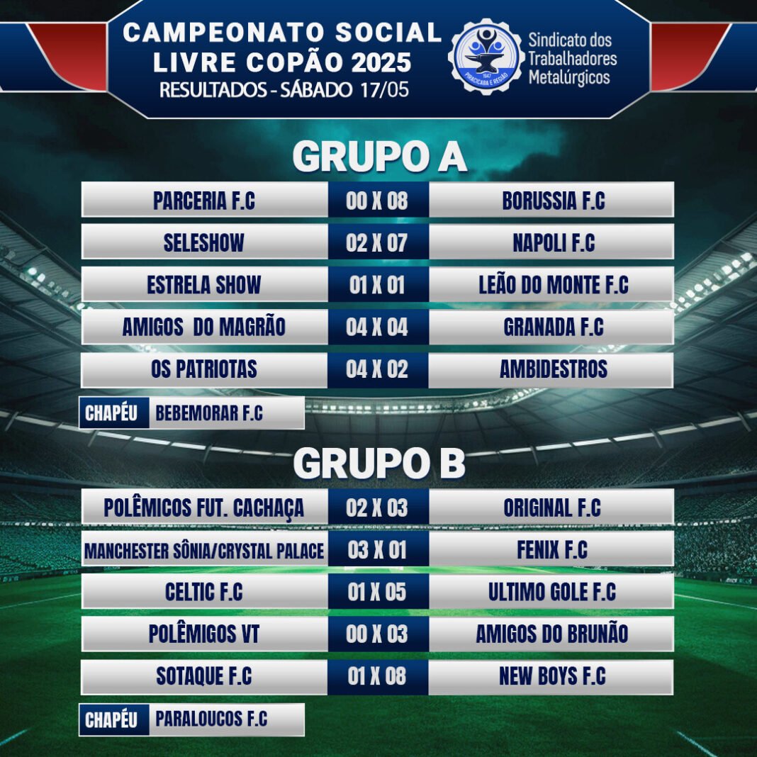 Os campos do Clube Recreativo dos Metalúrgicos receberam no sábado mais uma rodada do Campeonato de Futebol Social Livre Copão ⚽.