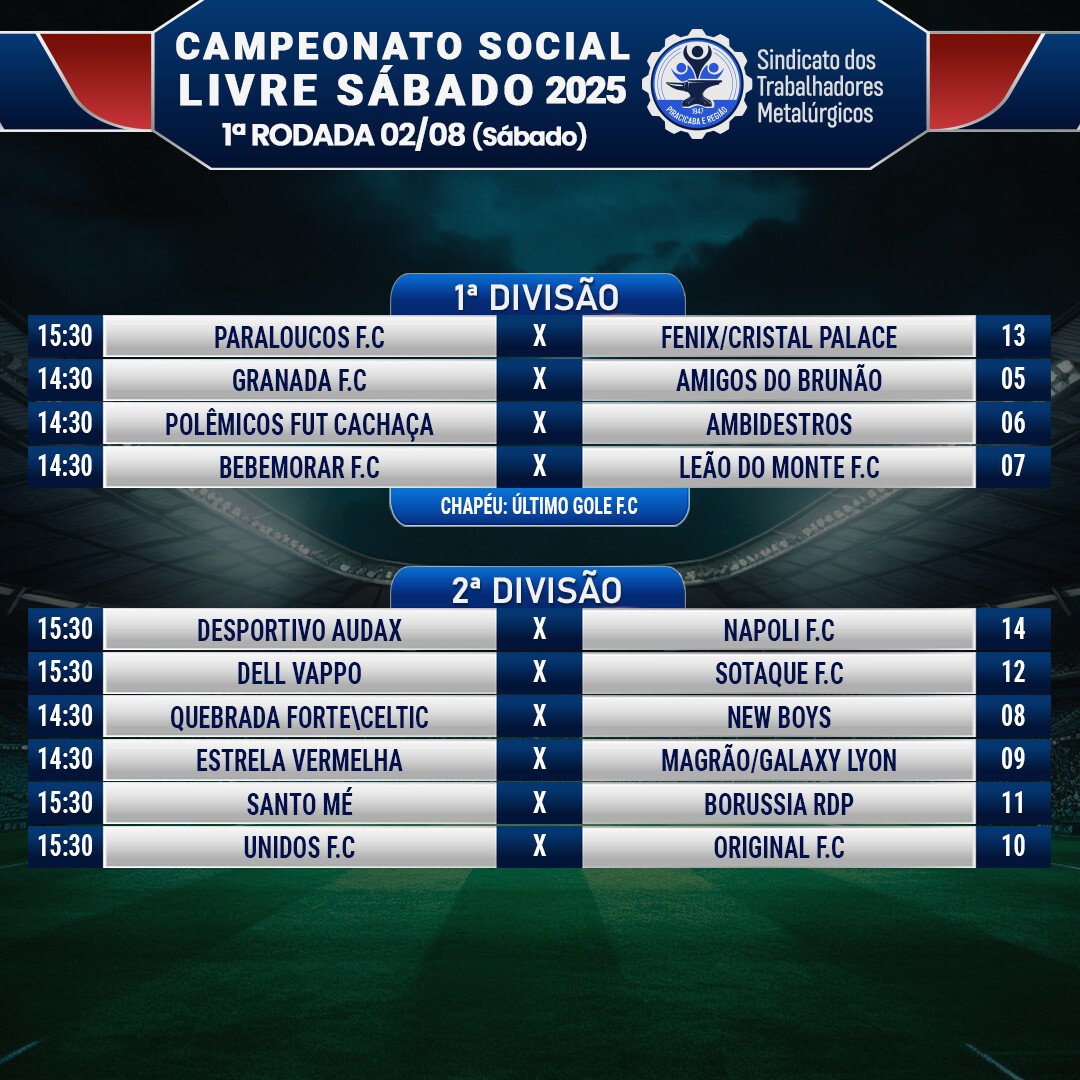 Os times do Social Livre tem a 1ª rodada agendada para sábado, dia 02 de agosto.