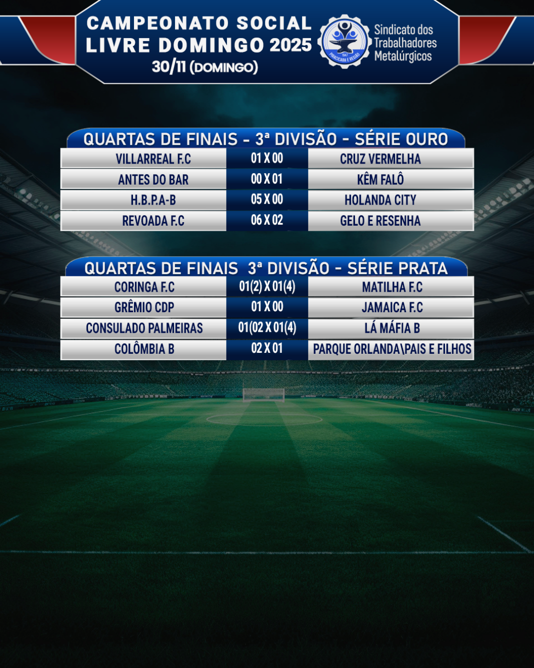 ▶Os resultados dos jogos são da 3ª divisão Ouro e Prata, disputadas que aconteceram no Clube Recreativo no último dia 30.
