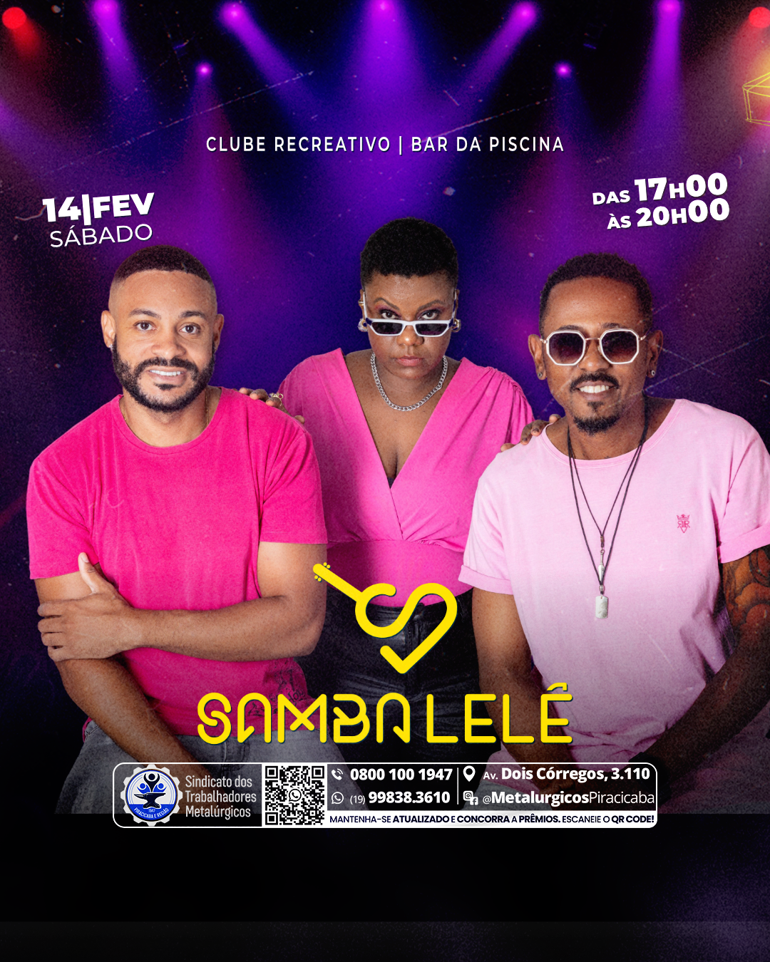 O Grupo Sambalelê está preparando um grande repertório para a apresentação de sábado, dia 14, no bar da piscina do Clube Recreativo dos Metalúrgicos.