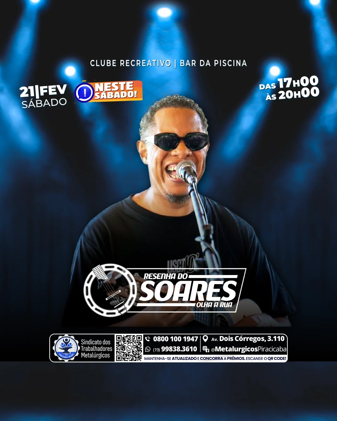 NESTE SÁBADO vamos contar com Resenha do Soares no bar da piscina.