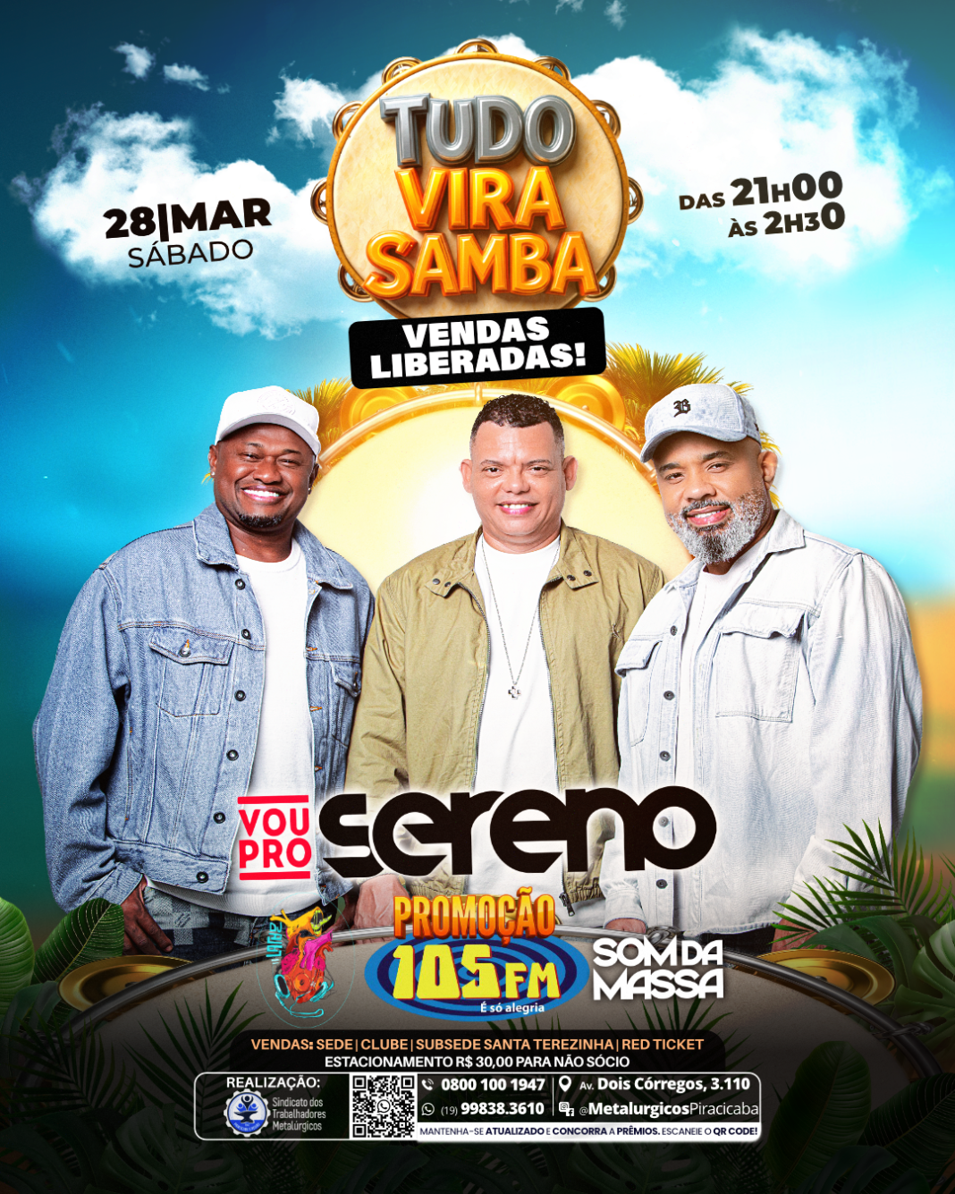 Evento “TUDO VIRA SAMBA” com Grupo Vou Pro Sereno, Som da Massa e DJ Lala.