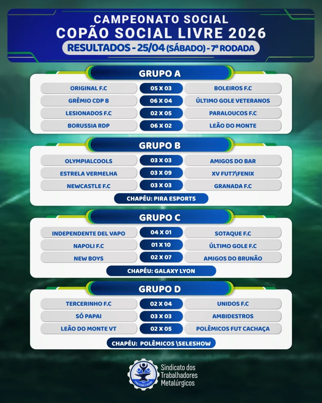 A bola segue rolando no maior Clube de Piracicaba e Região. Acompanhe os resultados do Campeonato de Futebol Social Livre Copão em disputa que aconteceu no último sábado⚽.