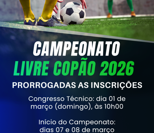 As inscrições do Campeonato Livre Copão 2026 foram prorrogadas.