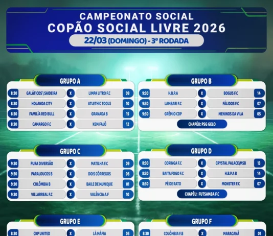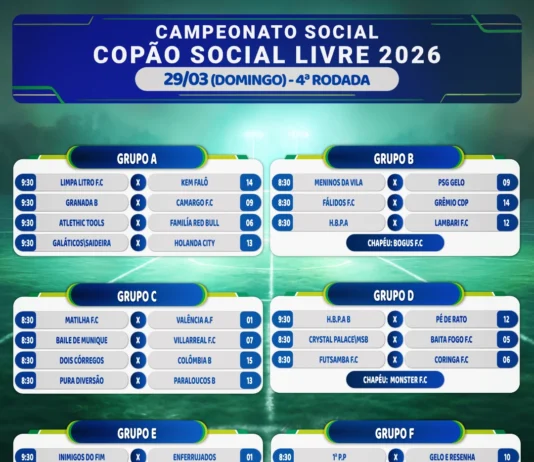 O Campeonato Futebol Social Livre Copão tem mais uma rodada no domingo, dia 29.