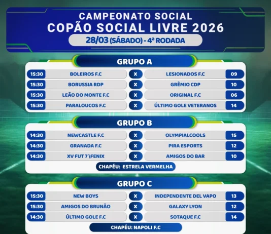 Sábado, dia 28, tem nova rodada do Campeonato Futebol Social Livre Copão.