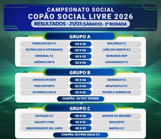 O Campeonato Futebol Social Livre Copão teve nova rodada no domingo, dia 22.