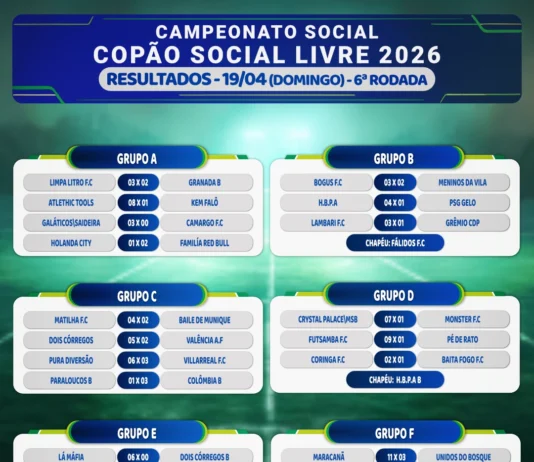 Confira como foi a rodada do último domingo, do Copão que acontece no Clube Recreativo dos Metalúrgicos.